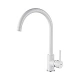 - Caño giratorio de 360°: El grifo blanco se puede girar 360 grados con una mano, lo que permite una gran flexibilidad de uso. Ideal para cocinas con uno o dos fregaderos, el caño se puede instalar a la izquierda o a la derecha según tus necesidades.